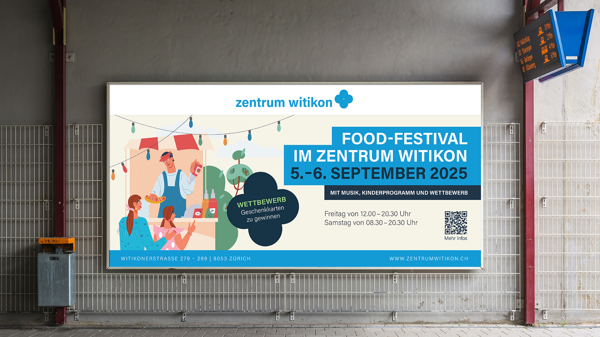 Seit mehreren Jahren dürfen wir das Zentrum Witikon im Rahmen des Center-Marketings begleiten und mit gezielten Massnahmen zur Belebung des Einkaufszentrums beitragen. Ein zentrales Highlight im Jahreskalender ist dabei das Food-Festival, das 2025 bereits zum dritten Mal durchgeführt wurde – und sich von Jahr zu Jahr stärker etabliert.